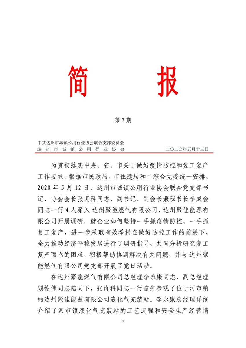 中共達(dá)州市城鎮(zhèn)公用行業(yè)協(xié)會(huì)聯(lián)合支部委員會(huì)2020年第七期簡報(bào)