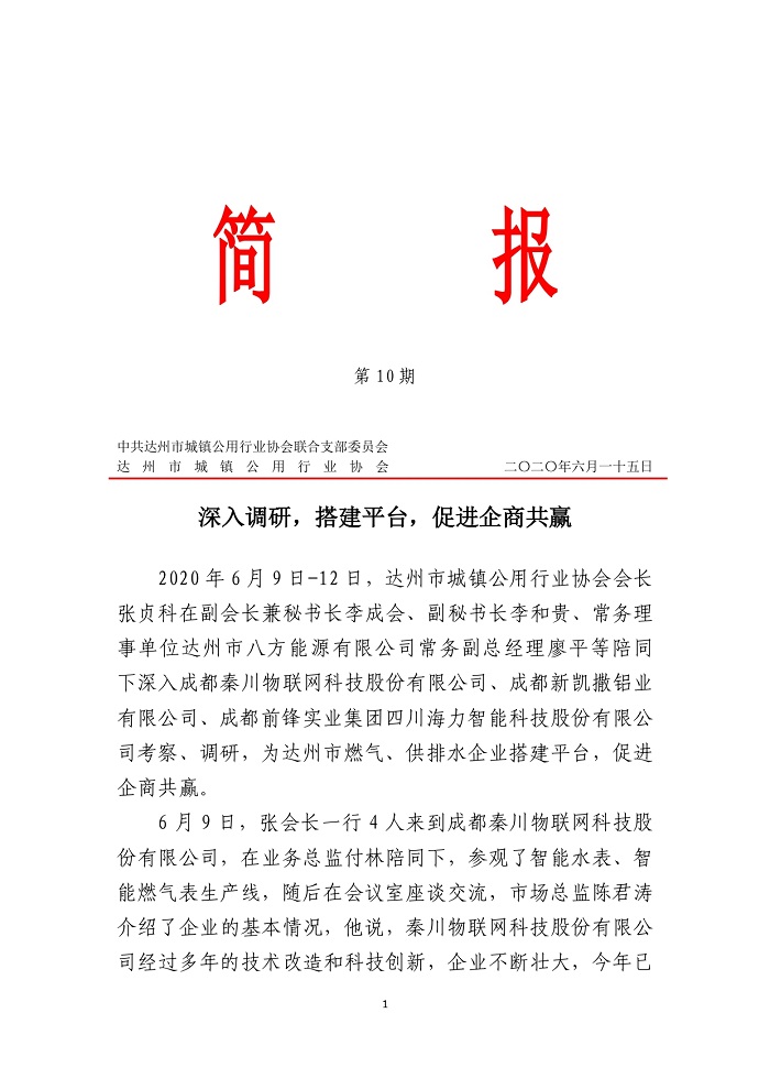 中共達(dá)州市城鎮(zhèn)公用行業(yè)協(xié)會(huì)聯(lián)合支部委員會(huì)2020年第十期簡報(bào)