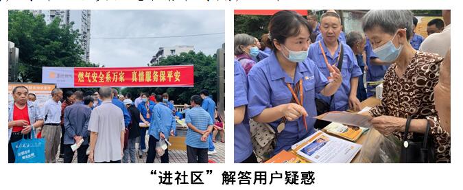 進社區(qū)——當“大顧問”,為用戶答疑解惑。公司工作人員走進清河社區(qū)、橄欖社區(qū)、峨城社區(qū),通過現(xiàn)場咨詢、懸掛橫幅、發(fā)放宣傳資料等多種形式,就群眾關心關切的燃氣安全相關問題給予解答。通過列舉發(fā)生在身邊的典型事故案例,對如何識別安全隱患及正確消除隱患進行了詳細地解說。將安全生產知識送到用戶手中,讓安全意識根植于用戶心中。