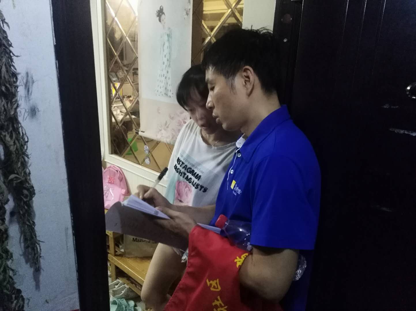 31日下午6:30分,公司15名黨員志愿者,身穿華潤天藍色短袖T恤、深色長褲,前往張家灣社區(qū)“雙報到”,領(lǐng)受社區(qū)安排的人口普查任務(wù)。在經(jīng)過短暫的普查培訓(xùn)后,在社區(qū)陳書記等帶領(lǐng)下,一組5人前往五環(huán)花園,另一組10人則到新世紀商住樓開展人口普查登記工作。志愿者們一層層、一戶戶敲響住戶的家門,禮貌地向住戶介紹來意,然后開始按照普查登記表填寫要求,把戶主姓名、住址、聯(lián)系電話、住房面積、常住人口數(shù)、家庭其他成員基本情況等信息逐項記錄下來。對于到訪不遇住戶,則在其家門上張貼人口普查告知書,方便其與社區(qū)聯(lián)系,盡快完成人口信息登記工作。當15名普查員梳篦式排查完全部住戶后,仍然有部分住戶因家中無人沒有登記。于是普查員們又在小區(qū)大門口或單元樓梯口設(shè)立普查點,對外出散步、跳廣場舞、下班回家歸來的住戶進行登記。一直忙碌到晚上10點,公司黨員志愿者共完成人口普查登記500余戶。雖然當晚天氣悶熱,普查員又加穿了志愿者馬甲,來回走動汗水濕透了衣裳,但沒有一人叫苦叫累。當把厚厚一摞普查登記表交到社區(qū)工作人員手中時,標志著此次人口普查任務(wù)圓滿結(jié)束,大家露出了滿意的微笑。
