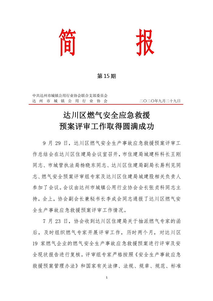 中共達州市城鎮(zhèn)公用行業(yè)協(xié)會聯(lián)合支部委員會2020年第十五期簡報