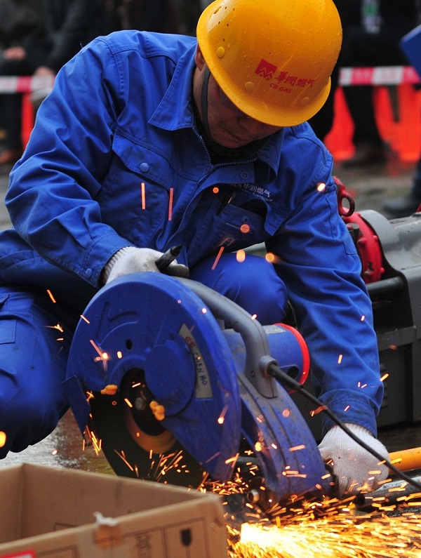 本次活動由達州區(qū)域公司常務(wù)副總經(jīng)理龔敬主持,達州區(qū)域公司黨委書記、總經(jīng)理何勇致辭,開江縣財政局黨委委員、副局長陶政宣布比武活動啟動,技能比武正式拉開了帷幕。各參賽隊伍通過現(xiàn)場抽簽,獲取管道安裝圖紙,進入緊張、有序的安裝比賽。選手們紛紛使出渾身解數(shù),進行電熔焊、管板對接焊、管對接焊、氣焊、鍍鋅管安裝、氣表及不銹鋼波紋管安裝,電焊現(xiàn)場火花四射,火熱的爭奪和現(xiàn)場洋溢的熱情讓綿綿秋雨也望而卻步,團隊的默契和專業(yè)能力如現(xiàn)場冉冉升起的朝陽,耀眼而奪目。