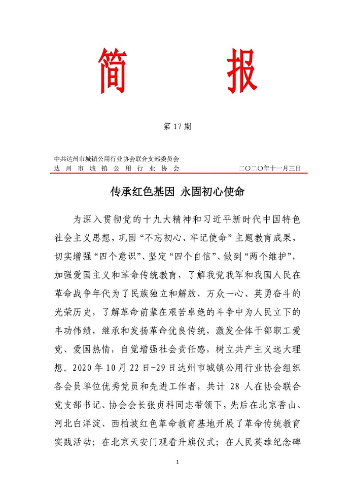 中共達(dá)州市城鎮(zhèn)公用行業(yè)協(xié)會(huì)聯(lián)合支部委員會(huì)2020年第十七期簡報(bào)