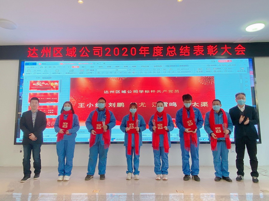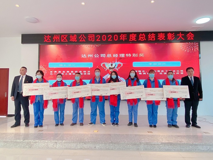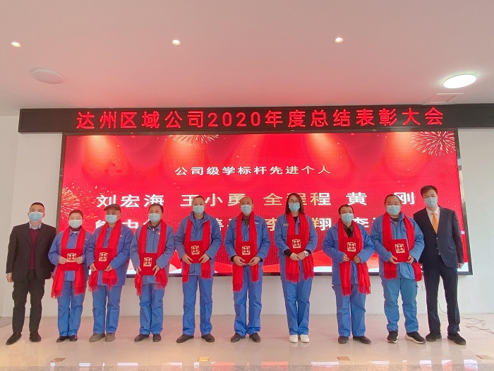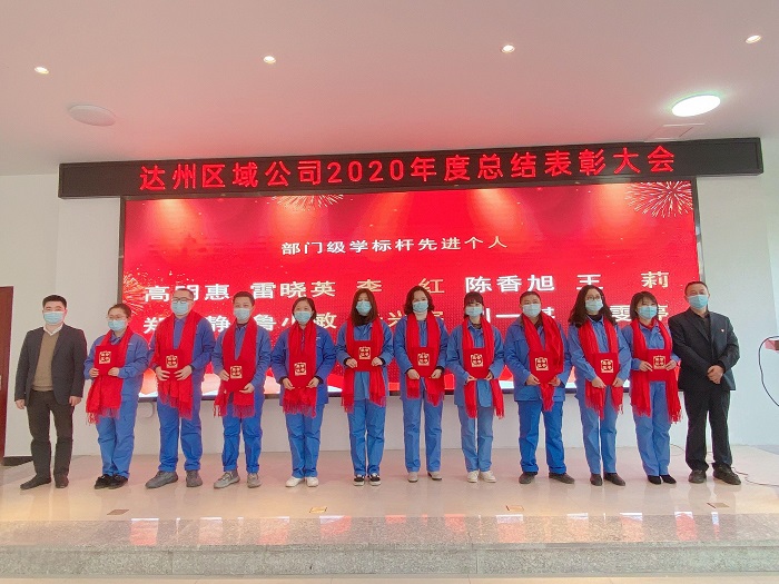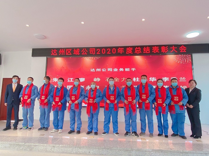 然后,達(dá)州區(qū)域公司副總經(jīng)理成堯宣讀表彰文件。會(huì)議對(duì)評(píng)選出的2020年區(qū)域級(jí)33個(gè)、公司級(jí)43個(gè)先進(jìn)個(gè)人和集體進(jìn)行了表彰。區(qū)域高管團(tuán)隊(duì)、各成員公司總經(jīng)理對(duì)獲獎(jiǎng)人員進(jìn)行了現(xiàn)場(chǎng)頒獎(jiǎng),并號(hào)召全體員工向標(biāo)桿學(xué)習(xí),以榜樣的力量引領(lǐng)大家奮發(fā)進(jìn)取、攜手向前。