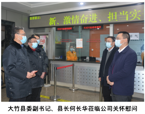 在2021年新春佳節(jié)即將來臨之際,大竹縣委副書記、縣長(zhǎng)何長(zhǎng)華帶領(lǐng)縣級(jí)各部門領(lǐng)導(dǎo)到公司殷切慰問,送來了黨和政府的關(guān)懷與溫暖。