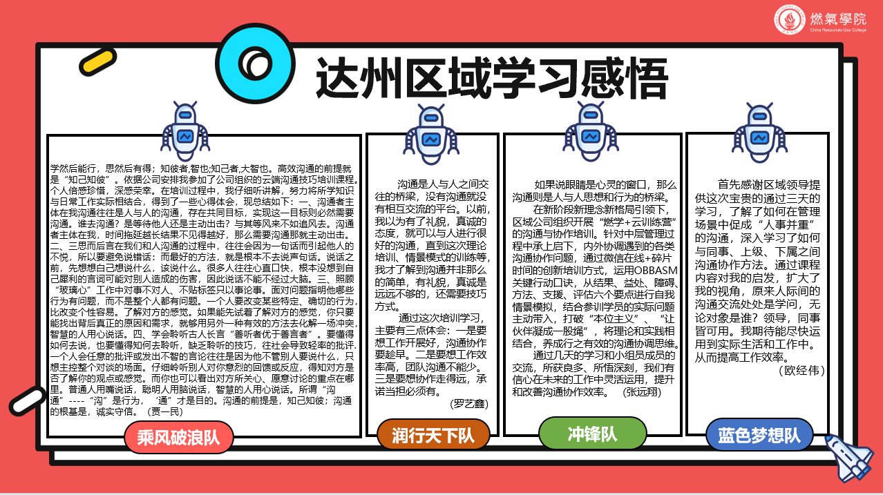 為進(jìn)一步優(yōu)化管理人員能力素質(zhì),推動(dòng)人才梯隊(duì)建設(shè),為公司新一輪發(fā)展提供人才儲(chǔ)備與支持的戰(zhàn)略規(guī)劃,華潤(rùn)燃?xì)膺_(dá)州區(qū)域公司于2021年6月5日-6月10日順利交付“燃學(xué)+云訓(xùn)練營(yíng)”中層管理能力提升之溝通與協(xié)作培訓(xùn)項(xiàng)目,通過(guò)采用線上培訓(xùn)管理新形式,精準(zhǔn)提升中層人才質(zhì)量,助力企業(yè)人才培養(yǎng)與發(fā)展。