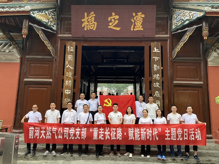 在中國(guó)共產(chǎn)黨成立100周年前夕,前河天然氣公司黨支部組織19名黨員前往甘孜瀘定橋,開展“重走長(zhǎng)征路 賦能新時(shí)代”主題黨日活動(dòng),以此慶賀中國(guó)共產(chǎn)黨的百年誕辰。19名黨員同志一起走在叢林中的小路上,情不自禁同唱《沒有共產(chǎn)黨就沒有新中國(guó)》,用心去感受紅四團(tuán)以一天進(jìn)行二百四十里的急行軍,爭(zhēng)分奪秒,搶在敵人前面奔向?yàn)o定橋,時(shí)間就是生命的驚人速度;站在瀘定橋上,看著大渡河水湍急流過,仿佛煙霧彌漫的戰(zhàn)場(chǎng)就在眼前,22個(gè)紅軍勇士懷著大無(wú)畏的犧牲精神和一往無(wú)前的革命意志,冒著敵人的槍林彈雨,面對(duì)熊熊烈火,攀爬著被敵人拆去橋板的鐵索,一舉奪下瀘定橋;在紅軍飛奪瀘定橋紀(jì)念碑前,全體黨員向紅軍先烈默哀、致敬,在黨支部紀(jì)檢委員、總經(jīng)理鄭玄同志的領(lǐng)誓下,重溫了入黨誓詞。