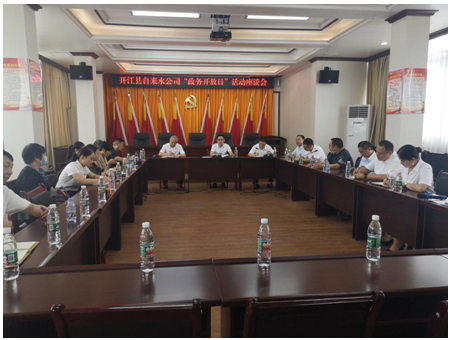 為深入貫徹黨的十九大精神和習(xí)近平新時代中國特色社會主義思想,切實推進陽光、透明、開放、服務(wù)型公司建設(shè),不斷提升公司服務(wù)水平,8月25日,開江縣自來水公司開展“政務(wù)開放日”活動,邀請縣人大代表、政協(xié)委員、縣財政局相關(guān)部門代表、媒體記者和群眾代表20余人參加活動。公司領(lǐng)導(dǎo)班子及各部門負責(zé)人陪同活動。