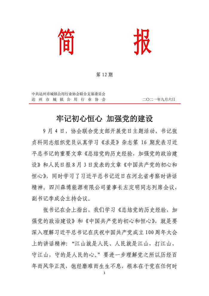 中共達(dá)州市城鎮(zhèn)公用行業(yè)協(xié)會聯(lián)合支部委員會2021年第十二期簡報(bào)