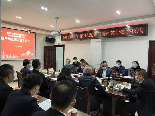 10月28日上午,渠縣華潤燃?xì)庥邢挢?zé)任公司與渠縣恒通燃?xì)庥邢薰九e行簽約儀式,雙方代表簽署資產(chǎn)轉(zhuǎn)讓協(xié)議。