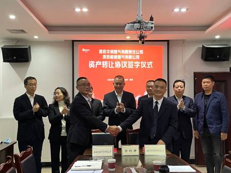 隨后,在與會(huì)人員的見證下,渠縣華潤燃?xì)夤九c渠縣恒通燃?xì)夤粳F(xiàn)場簽訂了《資產(chǎn)轉(zhuǎn)讓協(xié)議》并合影留念。