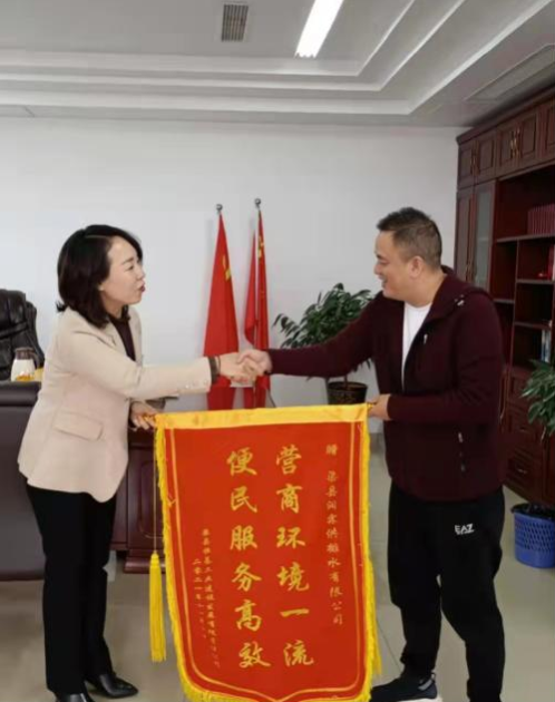 近日,我司主動到渠縣恒基工業(yè)建設(shè)有限責(zé)任公司,為其提供用水服務(wù)。指派專人到現(xiàn)場勘察規(guī)劃,本著“能省則省、管用耐用、優(yōu)質(zhì)高效”的服務(wù)原則進(jìn)行設(shè)計施工。優(yōu)化服務(wù)流程,減少申報材料,簡化供水手續(xù)。真正做到了“主動辦、立即辦、很快辦、辦則成”的“一站式”服務(wù)。我司指定專人到縣政務(wù)大廳中心服務(wù)窗口為該企業(yè)辦理手續(xù),并將發(fā)票親自送到該公司相關(guān)人員手中。施工人員通力合作,規(guī)范操作,連續(xù)奮戰(zhàn),經(jīng)過十多個小時的辛苦作業(yè),園區(qū)通暢供水。我司的服務(wù)理念、服務(wù)質(zhì)量、服務(wù)效能,深受駐渠企業(yè)的一致好評和高度贊賞。11月11日,渠縣恒基工業(yè)建設(shè)有限責(zé)任公司給我司贈送了一幅錦旗。上面寫著:“便民服務(wù)高效、營商環(huán)境一流”十二個金色大字。這既是對我司工作的肯定和贊揚(yáng),更是對我司工作的鞭策和鼓舞。我司干部、員工將不驕不躁,謙虛謹(jǐn)慎,不斷學(xué)習(xí),不斷上進(jìn),一步一個腳印,腳踏實(shí)地努力工作,主動走進(jìn)企業(yè),深入用戶,為廣大用戶和商企提供高效優(yōu)質(zhì)的一流供水服務(wù)!