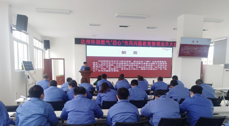 2月11日下午,達(dá)州華潤燃?xì)庥邢薰菊匍_專題安排部署關(guān)于“四心”作風(fēng)問題教育整頓工作會(huì)。傳達(dá)學(xué)習(xí)全市機(jī)關(guān)干部“四心”作風(fēng)問題教育整頓動(dòng)員大會(huì)精神,安排部署公司“四心”作風(fēng)問題教育整頓工作。公司班組長以上管理人員80余人參加會(huì)議。