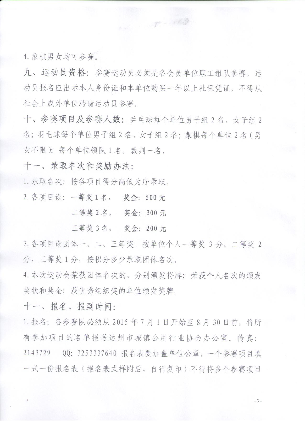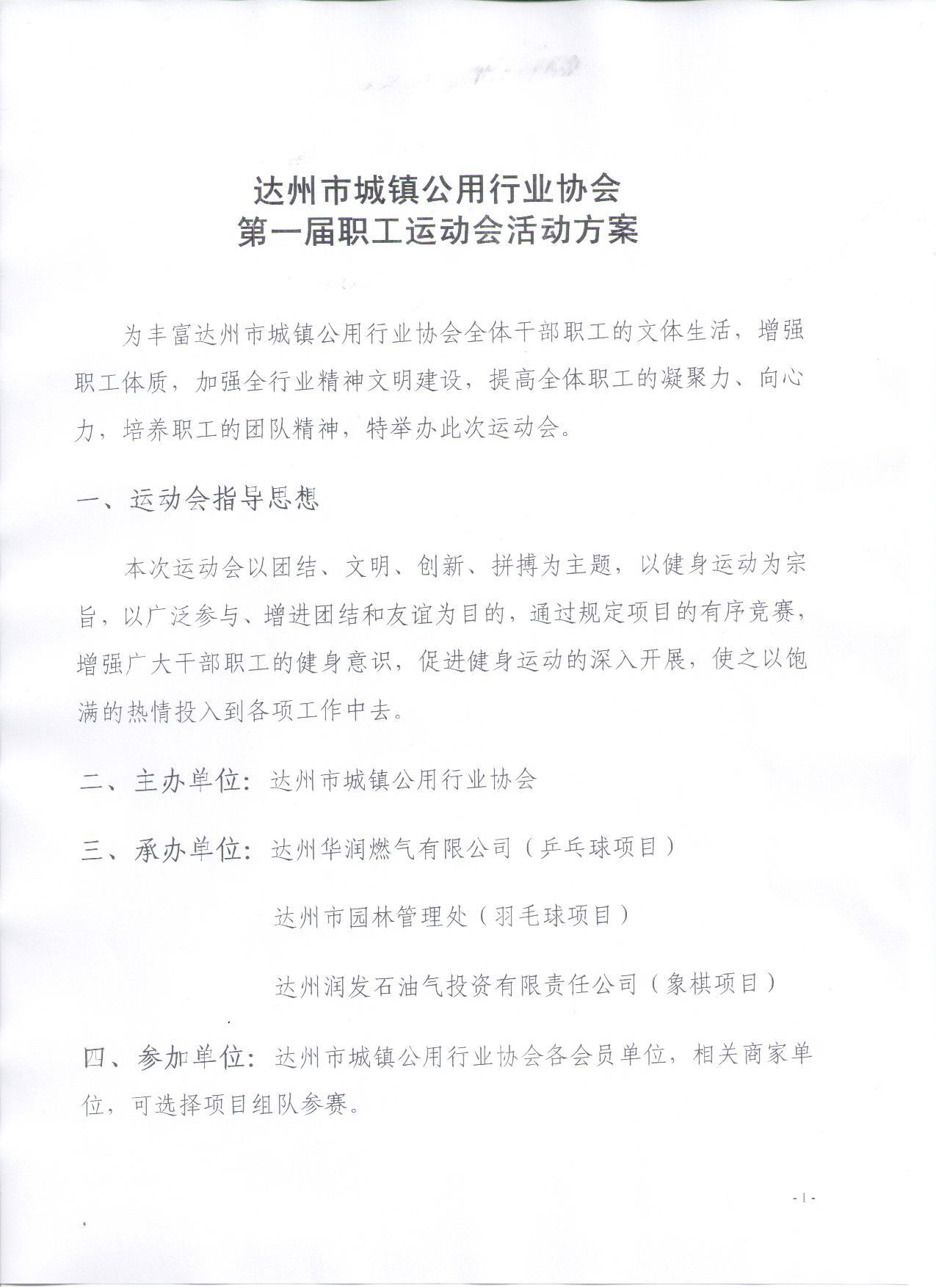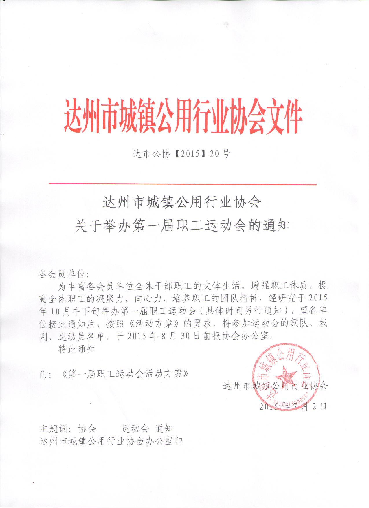 達州市城鎮(zhèn)公用行業(yè)協(xié)會關(guān)于舉辦第一屆職工運動會的通知
