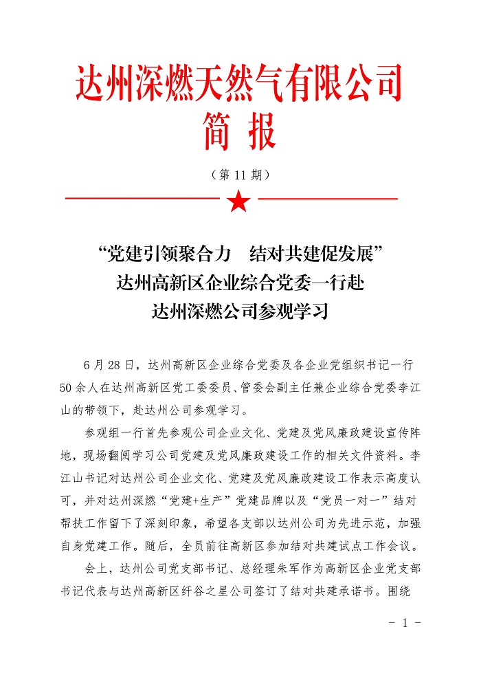 “黨建引領(lǐng)聚合力 結(jié)對(duì)共建促發(fā)展”達(dá)州高新區(qū)企業(yè)綜合黨委一行赴達(dá)州深燃公司參觀學(xué)習(xí)