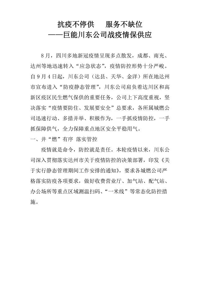 ——巨能川東公司戰(zhàn)疫情保供應(yīng)