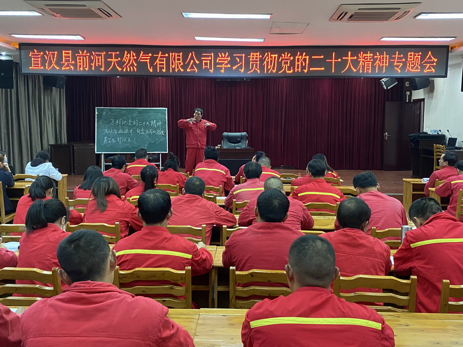 隨著中國共產(chǎn)黨第二十次全國代表大會在北京勝利閉幕,宣漢縣前河天然氣有限公司第一時間,于2022年10月23日晚組織全體職工召開了學習貫徹黨的二十大精神專題會。
