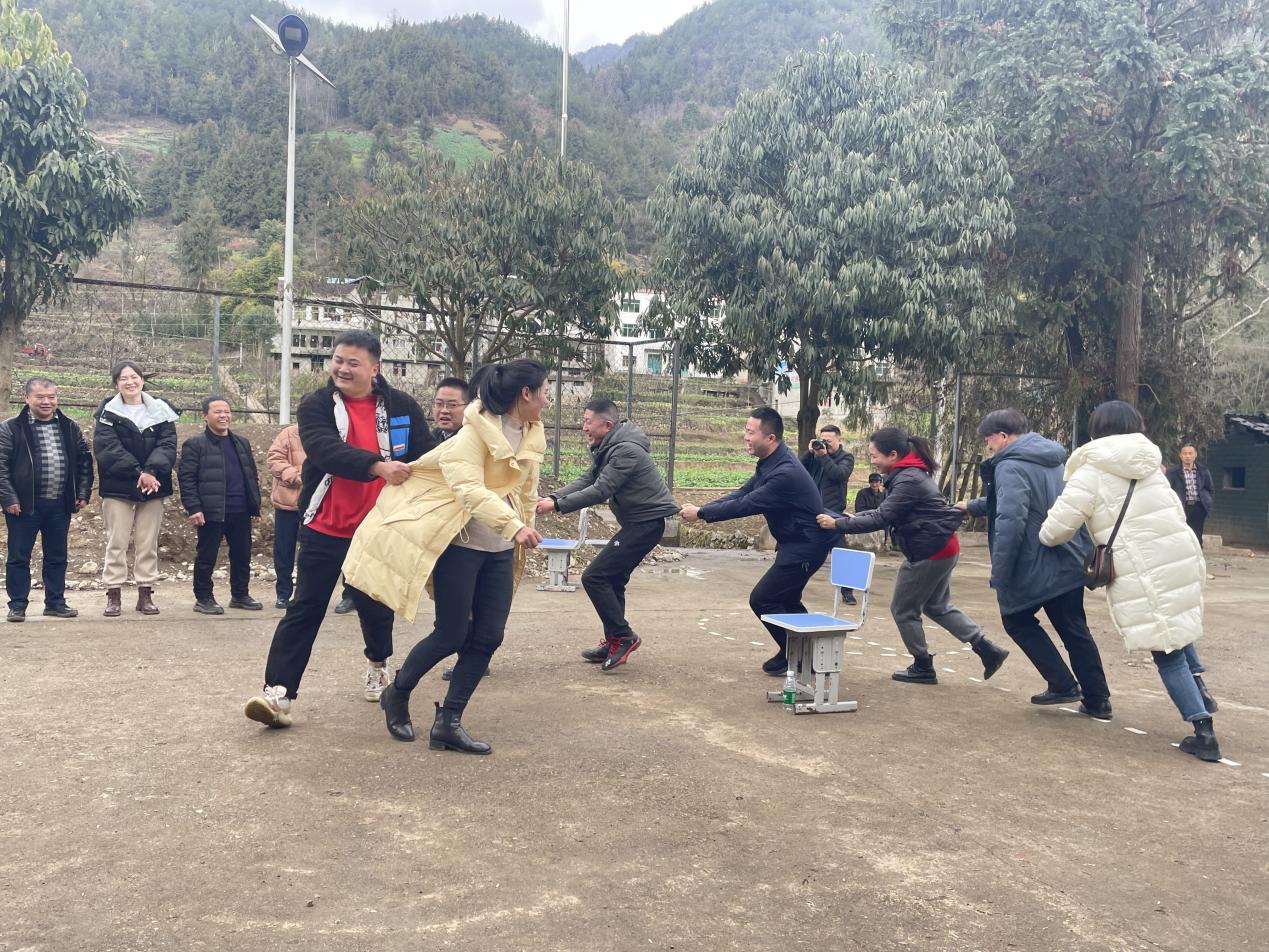 小學(xué),為5位農(nóng)村留守兒童送去課外書籍、文具、體育用具、牛奶等物品,了解老師和孩子們平日的學(xué)習(xí)、生活情況,鼓勵(lì)孩子們用積極、樂觀的心態(tài)好好學(xué)習(xí),天天向上。走訪結(jié)束后,全體人員在龍王壩村小學(xué)的操場(chǎng)上與師生一起開展了游戲互動(dòng),隨著乒乓球傳遞、一圈到底、夾紙竟走游戲的進(jìn)行,快樂的笑聲、優(yōu)美的歌聲和助威聲此起彼伏,將黨建共建交流活動(dòng)推向高潮。