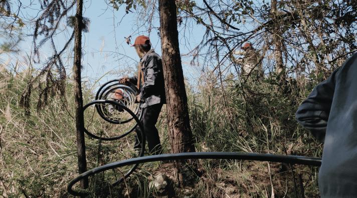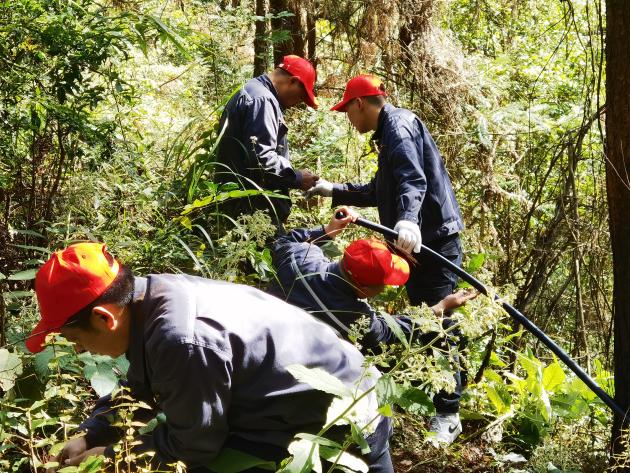 到了貓坪村,突擊隊(duì)員立馬投入到緊張地工作中。他們抬著笨重的設(shè)備、水管及配件,穿密林、跨溝壑,艱難地在茂密的森林中尋找被山洪損壞的水管。在施工現(xiàn)場,他們排除各種困難,認(rèn)真進(jìn)行供水管道焊接作業(yè),一片忙綠的施工場景成為貓坪村一道溫馨和美的畫面。