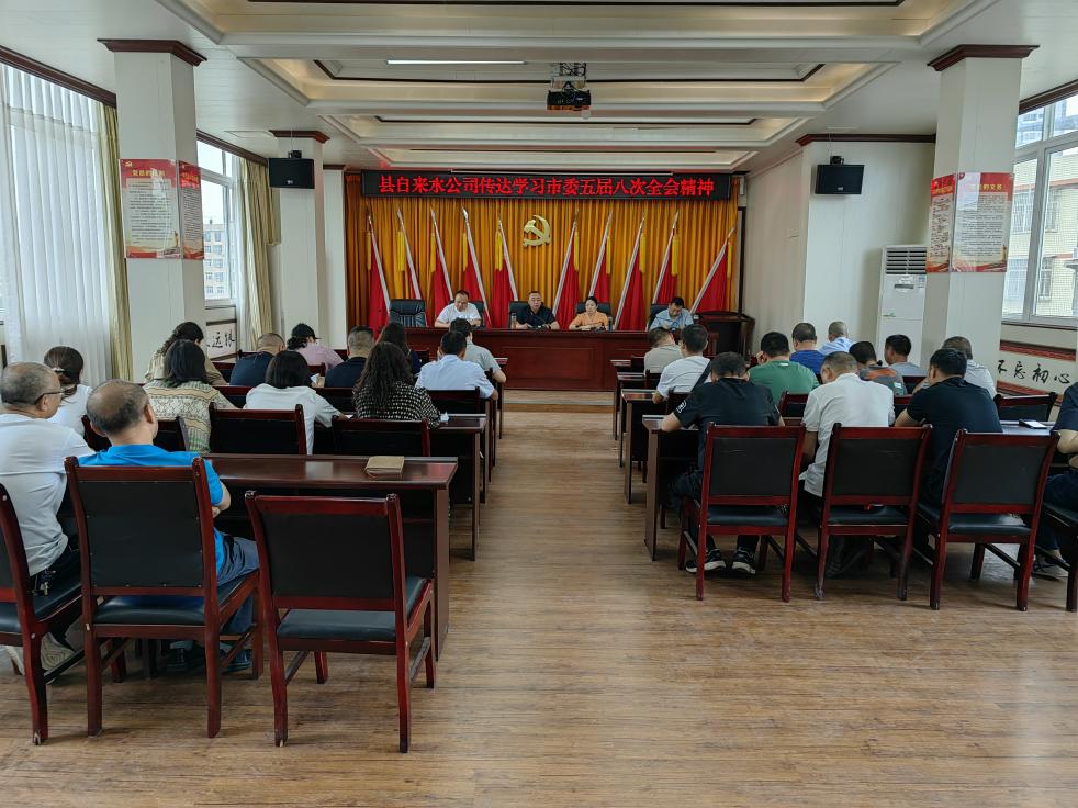 2024年6月17日上午,開江縣自來水有限責任公司召開專題會,傳達學習中國共產(chǎn)黨達州市第五屆委員會第八次全體會議精神,并提出了貫徹意見。會議由黨支部書記、董事長伍明波主持,公司領導班子、中層干部和全體黨員參加會議。