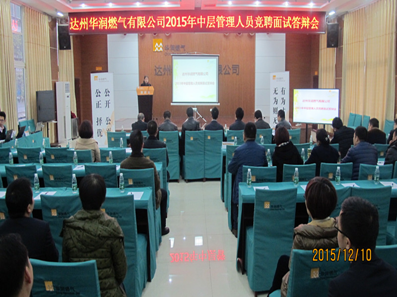 為落實華潤燃氣“尊重人的價值、開發(fā)人的潛能、升華人的心靈”人才工作宗旨,培養(yǎng)和造就一支贏得市場領先、創(chuàng)造組織優(yōu)勢、引領價值導向、有使命感與責任感的人才隊伍,支持戰(zhàn)略目標的實現(xiàn),提高選人用人公信度,激發(fā)干部隊伍生機與活力,營造優(yōu)秀人才脫穎而出的環(huán)境和風清氣正的選人用人環(huán)境,12月10日,達州華潤燃氣有限公司舉行了中層管理人員競聘答辯會,對公司9部1室1分公司共24個中層管理職位公開競聘。