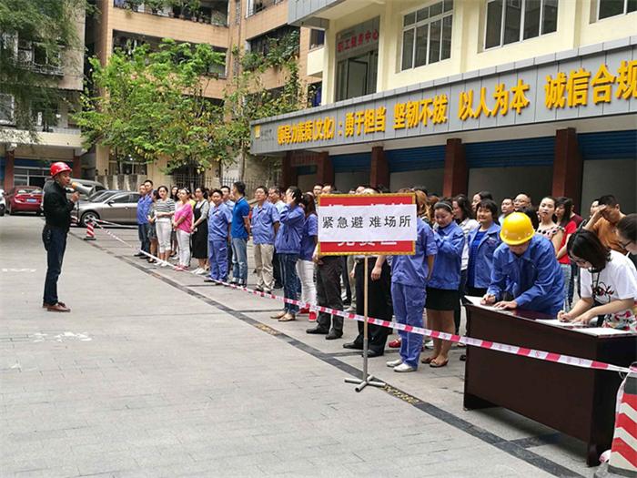 上午9時30分左右,突然“噓噓、噓噓......”的報警口哨聲大作,隨即高音喇叭聲響起,“辦公樓突發(fā)火災(zāi),請所有人員按照演練方案迅速撤離辦公樓,到緊急避難場所集中......”演練現(xiàn)場總指揮發(fā)出指令后, 正在公司辦公大樓內(nèi)上班的員工立即起身,用濕毛巾或軟布捂住口鼻,彎腰沿著疏散通道靠著墻壁快步行走。僅僅2分鐘,80余名員工迅速集中到公司大院內(nèi)設(shè)置的緊急避難場所。演練結(jié)束時,公司主要領(lǐng)導(dǎo)作了演練總結(jié)。