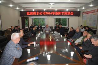 泓霖供水公司召開2016年重陽節(jié)座談會。步步登高開視野,年年重九勝春光。為喜迎2016年重陽佳節(jié),10月9日,泓霖供水公司組織公司退休老領(lǐng)導(dǎo)、老職工20余人在公司二樓會議室召開了重陽節(jié)座談會,送上公司對各位退休老同志們的節(jié)日祝福與問候。