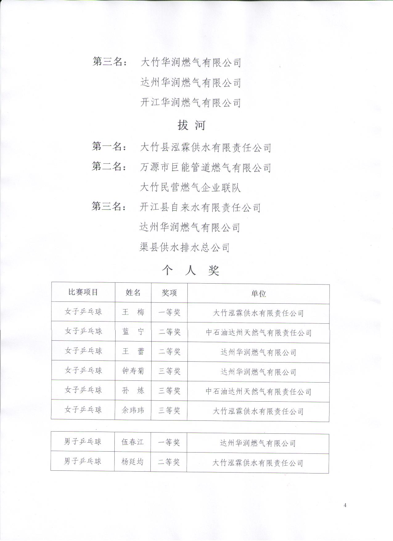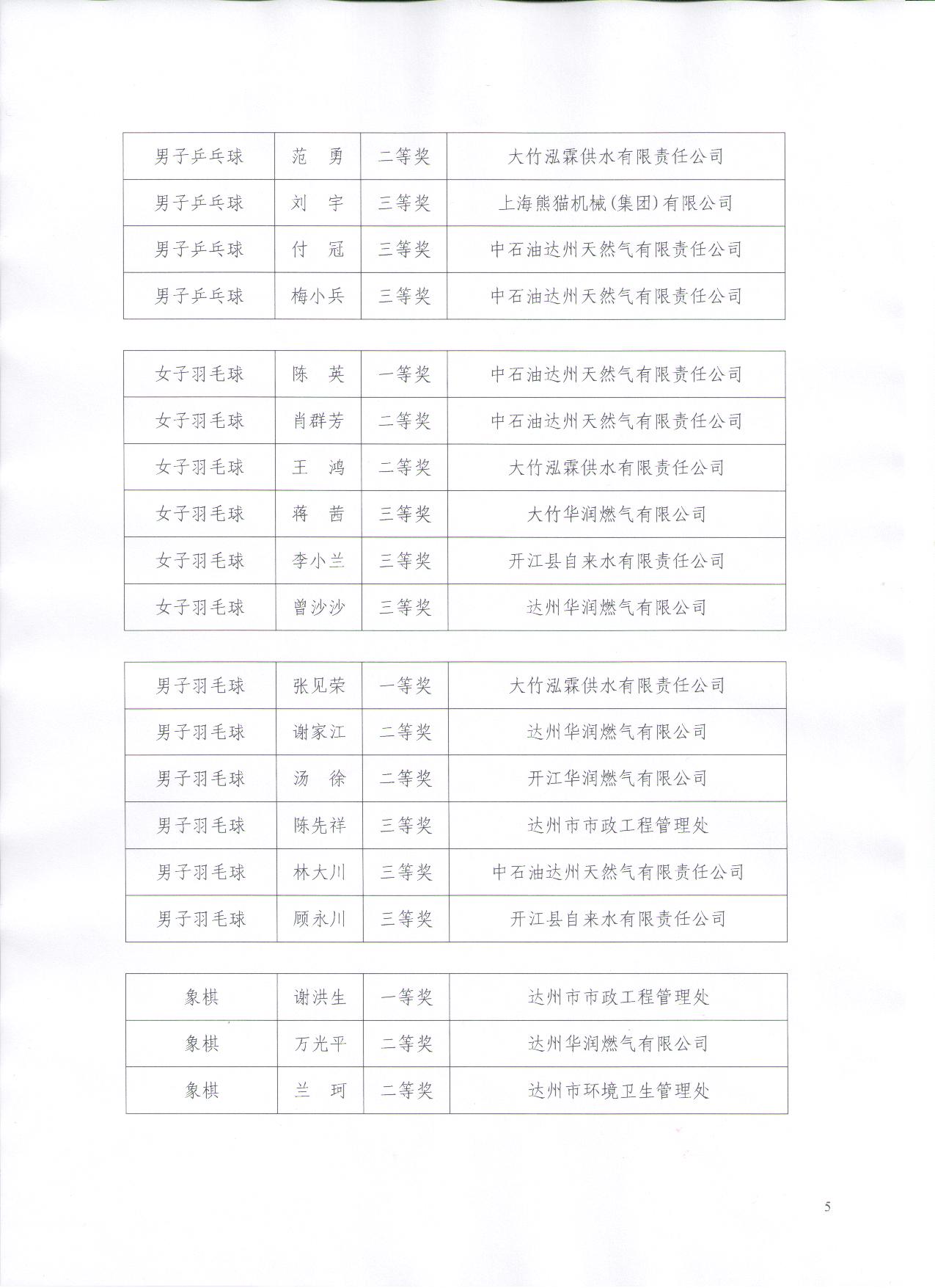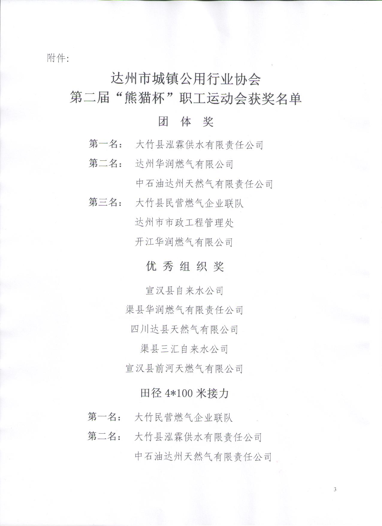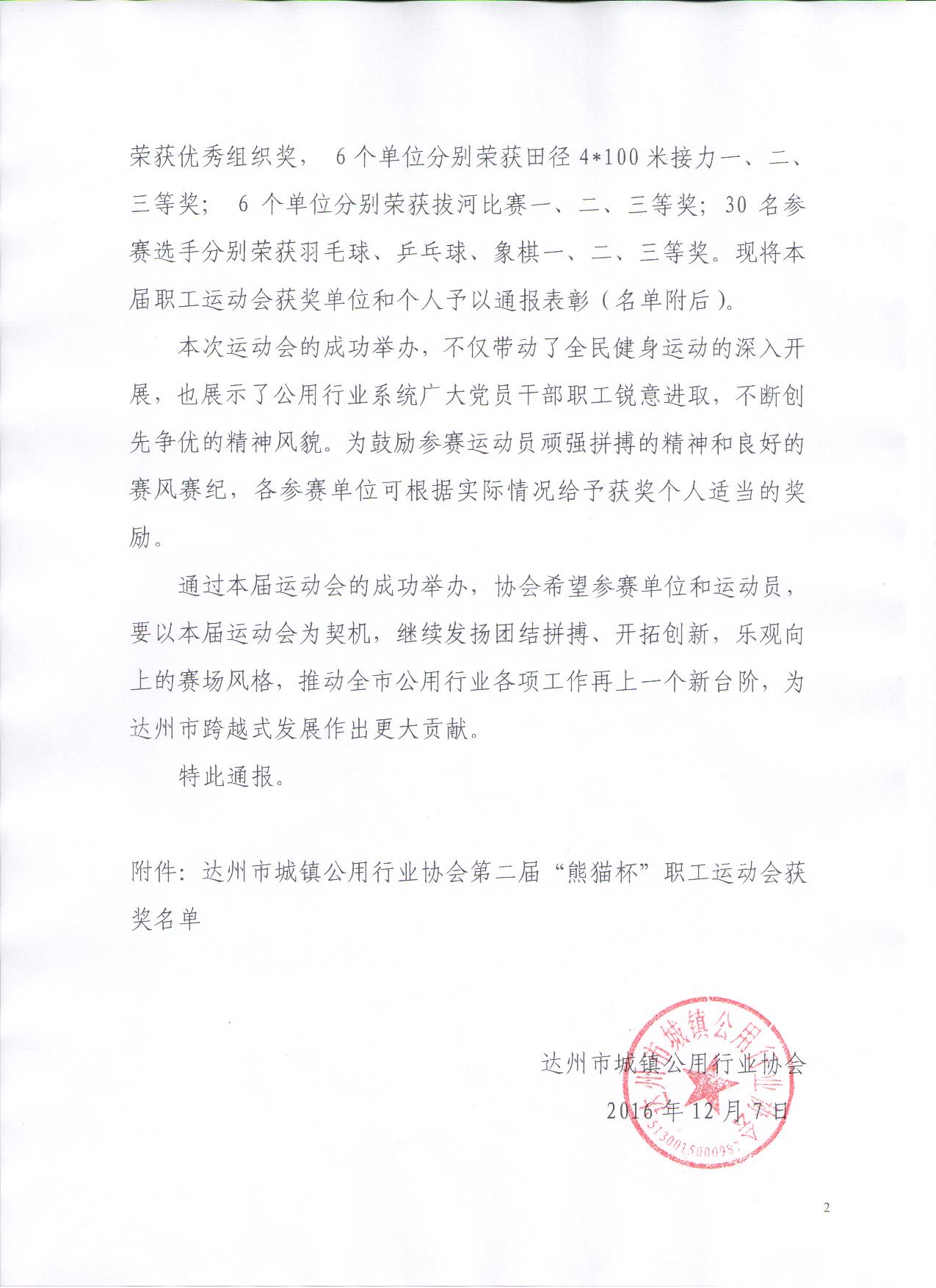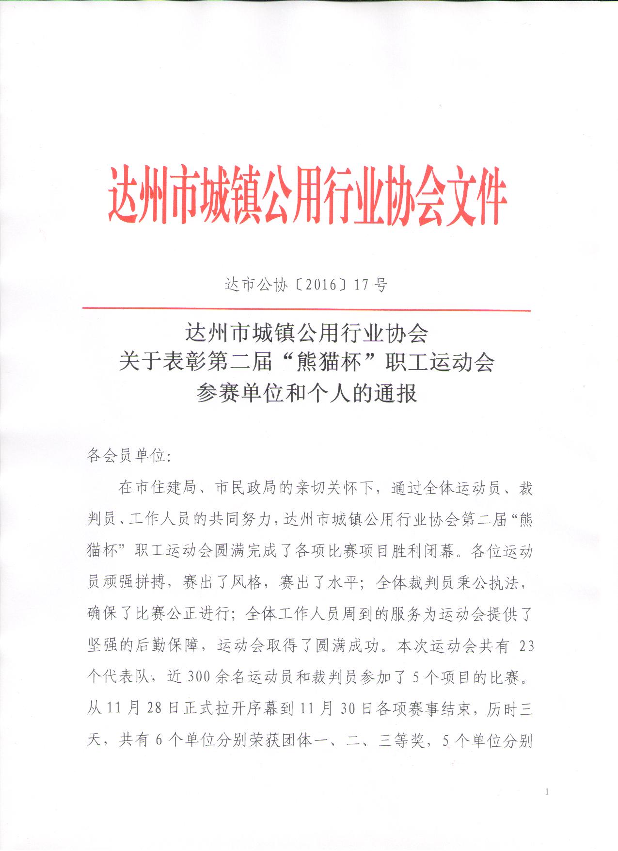 達(dá)州市城鎮(zhèn)公用行業(yè)協(xié)會關(guān)于表彰第二屆“熊貓杯”職工運(yùn)動會參賽單位和個人的通報