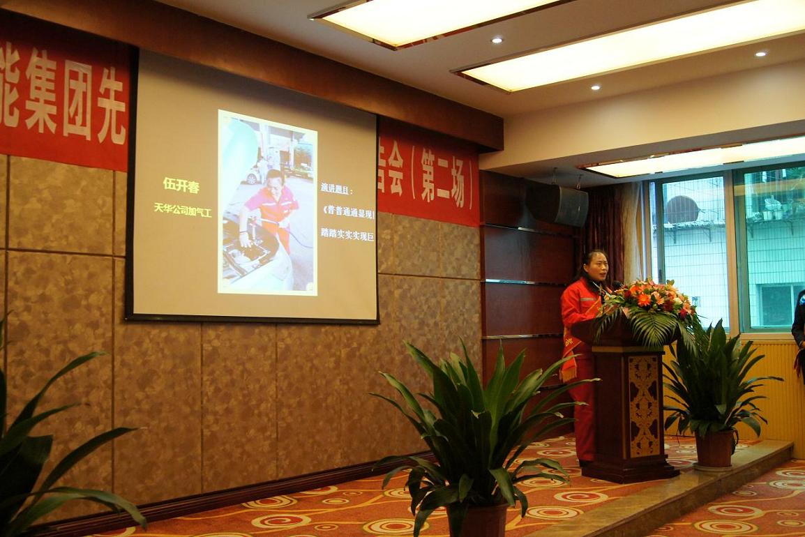 天華公司的伍開春,作為一名一線的加氣女員工,勇敢地處置加氣過(guò)程中的突發(fā)險(xiǎn)情;克服了工作崗位的勞累,默默為公司奉獻(xiàn)自己的青春;在母親病重期間,堅(jiān)守工作崗位,不能陪伴親人就醫(yī),幾乎導(dǎo)致產(chǎn)生了“子欲孝而親不在”的內(nèi)疚感。講到情深之處,她不禁潸然淚下。此刻,全體聽眾對(duì)其報(bào)以鼓勵(lì)掌聲,以堅(jiān)定其繼續(xù)演講的信心!