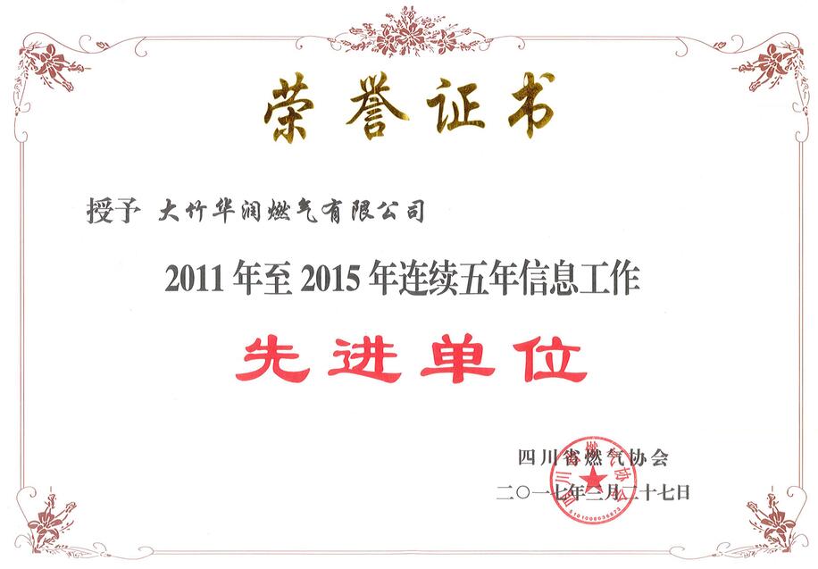 3月30日,四川省燃氣協(xié)會成立三十周年總結(jié)大會暨八屆二次會員代表大會在成都勝利召開。大竹華潤燃氣有限公司喜獲四川省燃氣協(xié)會頒發(fā)的“四川省燃氣協(xié)會成立30周年杰出貢獻獎”,“2016年安全生產(chǎn)標準化建設(shè)先進單位”,2011至2015年連續(xù)五年“安全生產(chǎn)先進單位”、“燃氣經(jīng)營企業(yè)精神文明建設(shè)先進單位”、“信息工作先進單位”,“2016年組稿撰稿工作先進單位”共九項榮譽稱號;員工余中明榮獲“2016年四川省燃氣經(jīng)營企業(yè)服務(wù)標兵”榮譽稱號;員工劉桁江、蔣茜榮獲“2016年組稿撰稿工作先進個人”榮譽稱號。