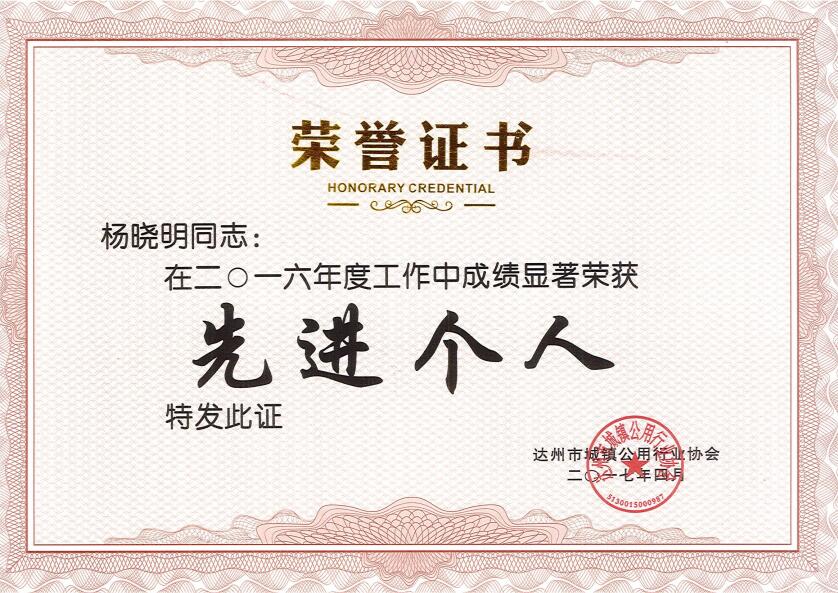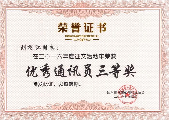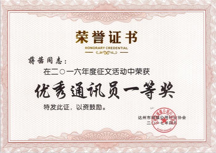 大竹公司喜獲達(dá)州市城鎮(zhèn)公用行業(yè)“優(yōu)秀企業(yè)”榮譽(yù)稱號