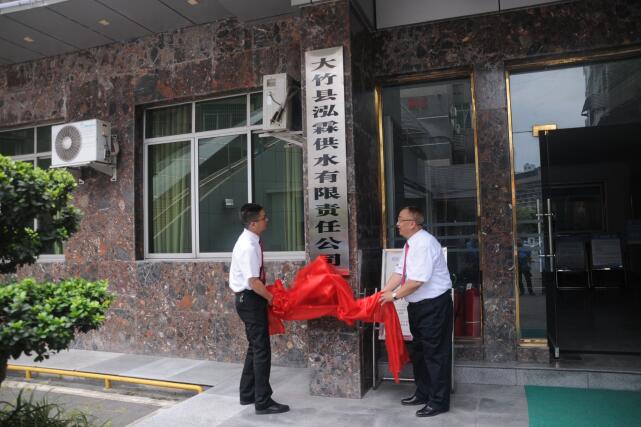 泓霖供水公司舉行揭牌儀式。6月8日,大竹縣泓霖供水有限責(zé)任公司舉行揭牌儀式,標(biāo)志著竹城供水事業(yè)翻開嶄新的一頁。公司黨委書記、總經(jīng)理鄧小林,黨委副書記、紀(jì)委書記、工會主席王文友為新公司揭牌,公司領(lǐng)導(dǎo)班子成員及中層干部20余人參加揭牌儀式。
