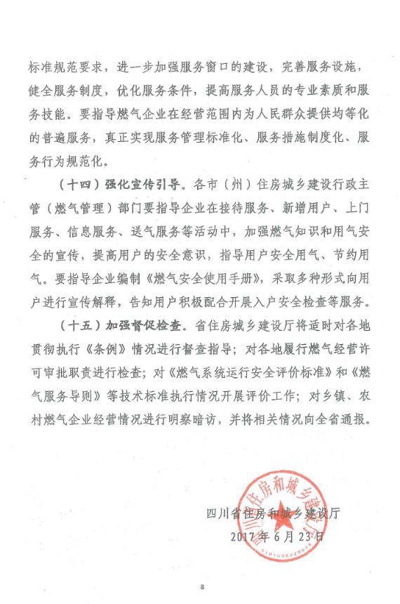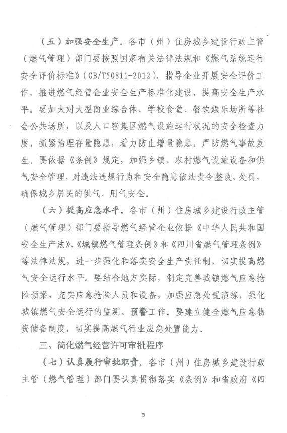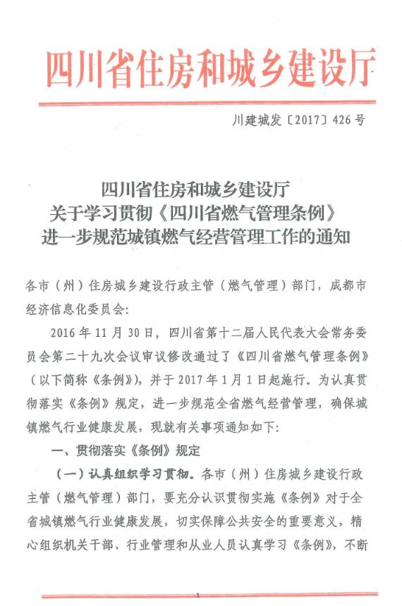 四川省住房和城鄉(xiāng)建設(shè)廳關(guān)于學(xué)習(xí)貫徹《四川省燃?xì)夤芾項(xiàng)l例》進(jìn)一步規(guī)范城鎮(zhèn)燃?xì)饨?jīng)營管理工作的通知