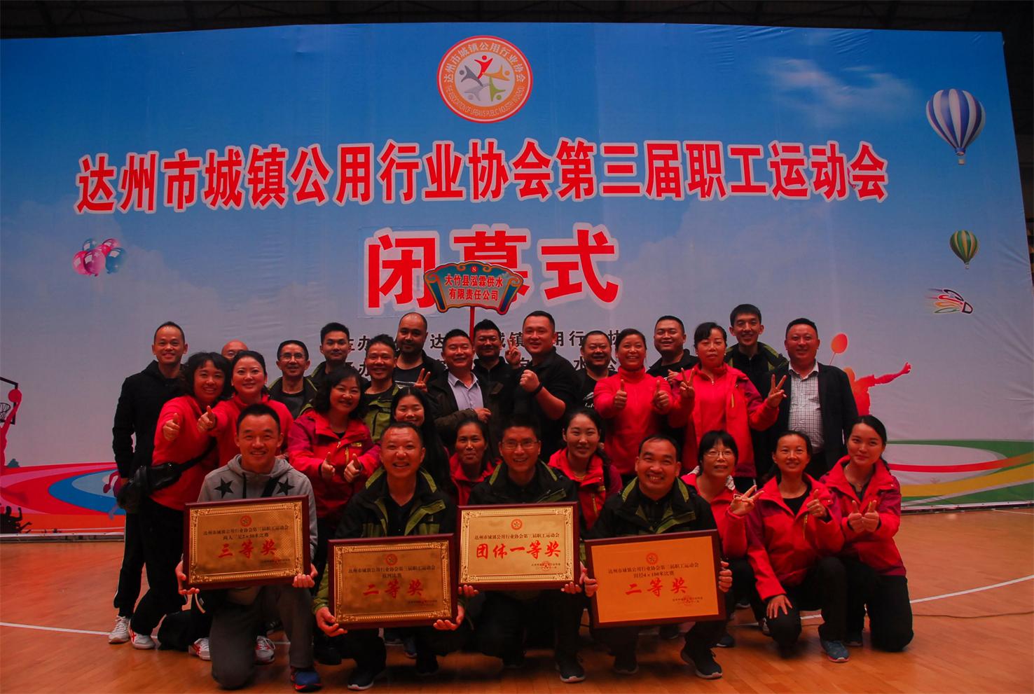泓霖供水公司蟬聯(lián)市公用行業(yè)協(xié)會(huì)第三屆職工運(yùn)動(dòng)會(huì)團(tuán)體一等獎(jiǎng)。11月16-17日,達(dá)州市城鎮(zhèn)公用行業(yè)協(xié)會(huì)第三屆職工運(yùn)動(dòng)會(huì)在宣漢縣隆重舉行。來(lái)自全市各區(qū)縣供排水、燃?xì)、石油、園林、市政等18家協(xié)會(huì)會(huì)員單位代表隊(duì)約300余名運(yùn)動(dòng)員參賽,圍繞拔河、4*100接力、兩人三足3個(gè)集體項(xiàng)目和羽毛球、乒乓球、象棋3個(gè)個(gè)人項(xiàng)目展開(kāi)激烈角逐,最終泓霖供水公司代表隊(duì)以總成績(jī)排名第一蟬聯(lián)團(tuán)體一等獎(jiǎng)。