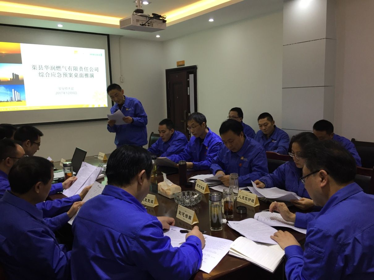 2017年12月6日上午,渠縣華潤燃?xì)庥邢挢?zé)任公司在公司會議室組織開展了渠縣華潤燃?xì)庥邢挢?zé)任公司2017年綜合應(yīng)急預(yù)案桌面推演。