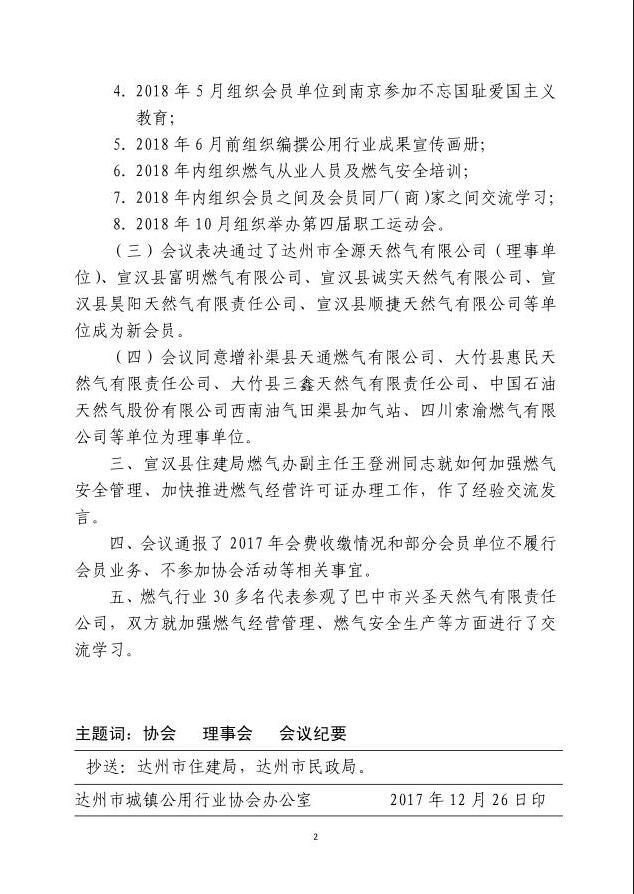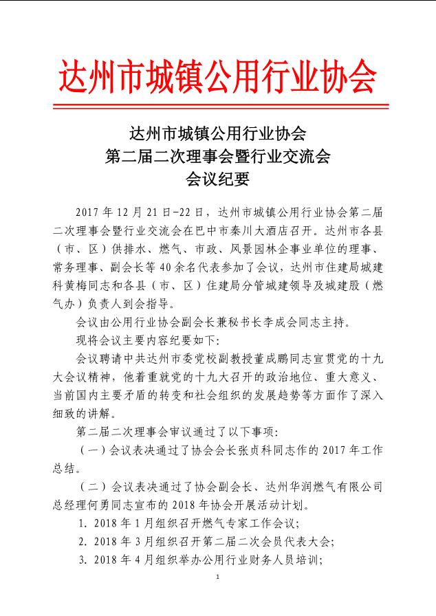 達州市城鎮(zhèn)公用行業(yè)協會第二屆二次理事會暨行業(yè)交流會會議紀要