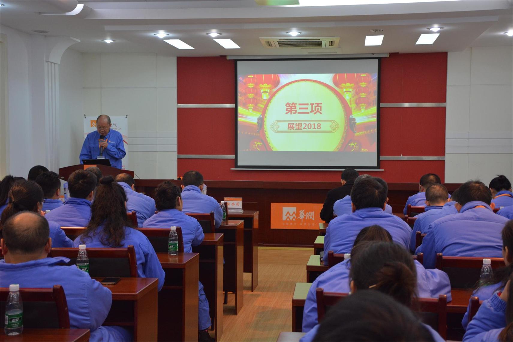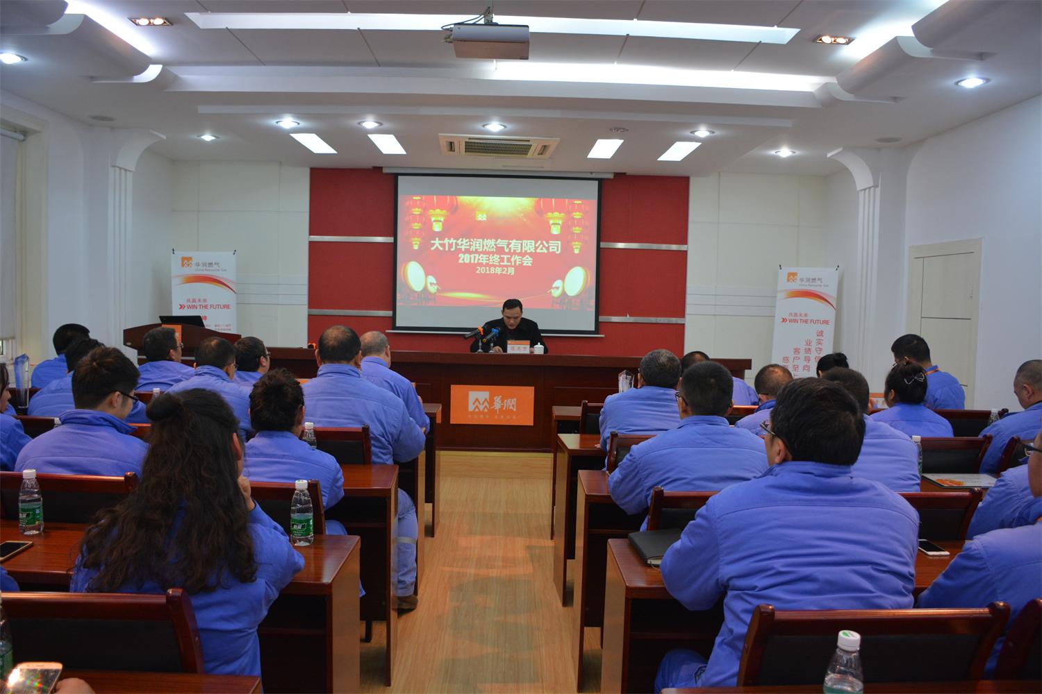 金雞辭舊歲,瑞犬送春來。為表彰先進(jìn)、回首2017、展望2018,2月8日下午,大竹華潤燃?xì)庥邢薰韭≈嘏e行2017年終工作會。會議由綜合管理部經(jīng)理張莉主持,大竹縣國資辦黨委書記、主任陳思萬出席,公司全體員工(除當(dāng)班人員)盛大集結(jié)。