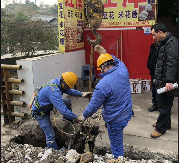 由于勝利橋橋面狹窄、車輛雙向通行,施工圍擋已使道路擁堵,使用吊車敷設(shè)過(guò)橋管線讓道路更加水泄不通。當(dāng)廟壩鎮(zhèn)政府知道情況后,指派專人負(fù)責(zé)現(xiàn)場(chǎng)的交通疏導(dǎo),為我們安裝施工保駕護(hù)航。