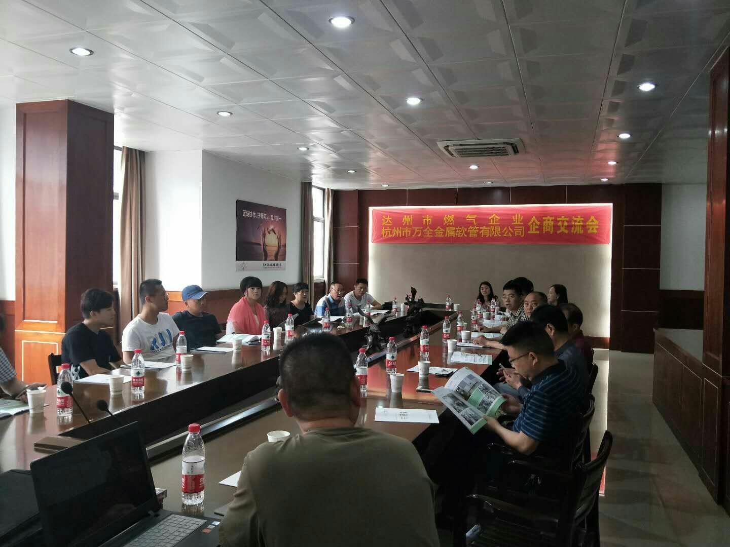 協(xié)會(huì)副會(huì)長(zhǎng)兼秘書長(zhǎng)李成會(huì)帶領(lǐng)燃?xì)馄髽I(yè)的代表參加了杭州萬全金屬軟管有限公司企商技術(shù)交流會(huì),該公司吳文慶總經(jīng)理致歡迎詞,他對(duì)來自達(dá)州市燃?xì)馄髽I(yè)的朋友表示熱烈歡迎,他表示,協(xié)會(huì)搭建這個(gè)平臺(tái),對(duì)于我們相互交流,增進(jìn)友誼,廣交朋友起到了紐帶和橋梁作用。吳總經(jīng)理就公司的發(fā)展和基本情況作了介紹,對(duì)公司產(chǎn)品的技術(shù)、產(chǎn)品的質(zhì)量、產(chǎn)品的生產(chǎn)工藝流程及銷售等情況作了詳細(xì)講解。燃?xì)馄髽I(yè)的代表分別在會(huì)上發(fā)言,對(duì)他們的新產(chǎn)品、新技術(shù)及產(chǎn)品質(zhì)量進(jìn)行咨詢和交流,并對(duì)公司的波紋管及其他產(chǎn)品表示認(rèn)可,紛紛表示有合作的空間。