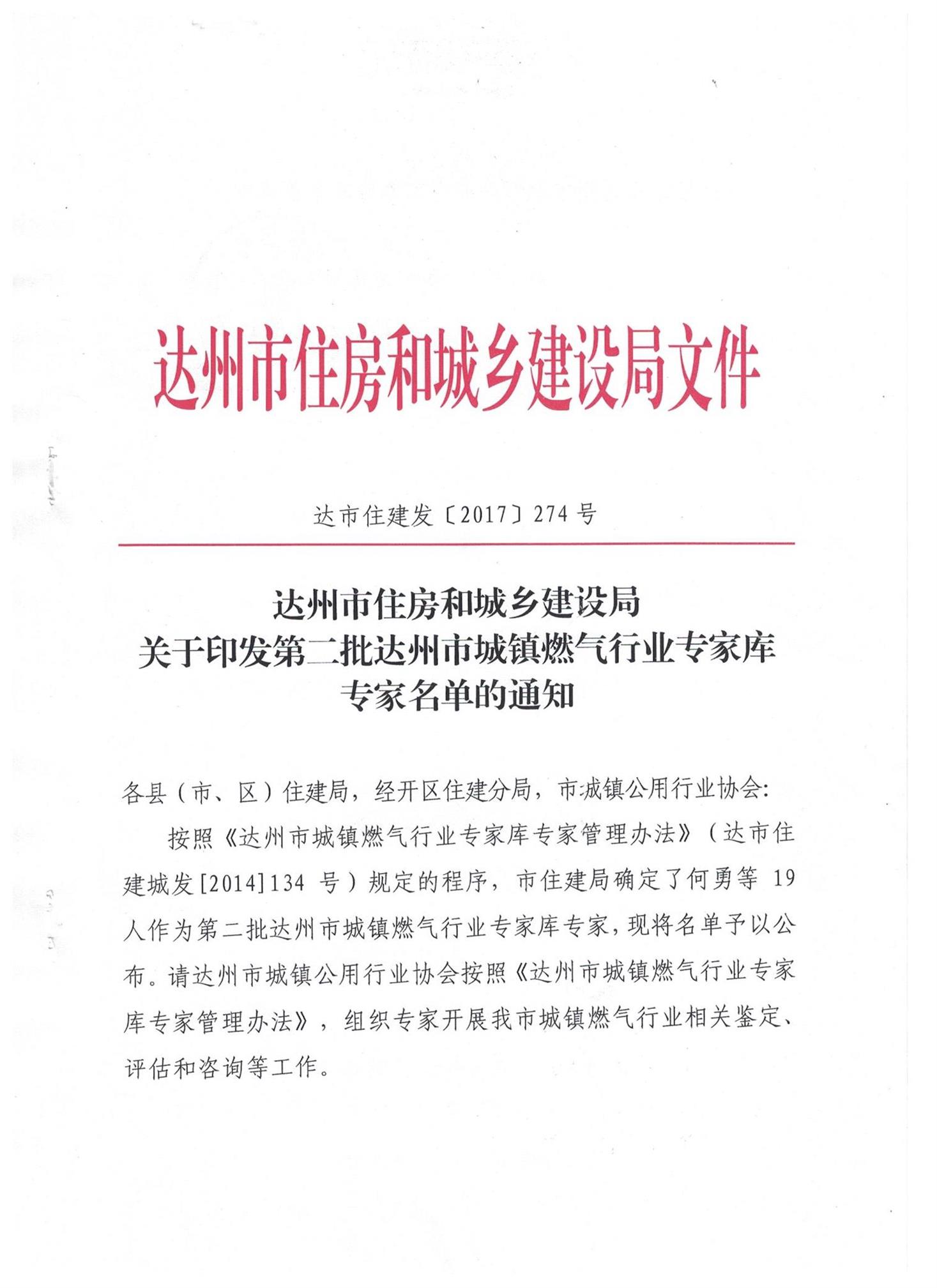 達(dá)州市住建局關(guān)于印發(fā)《達(dá)州市城鎮(zhèn)燃?xì)庑袠I(yè)專家?guī)鞂<夜芾磙k法(修訂版)》的通知