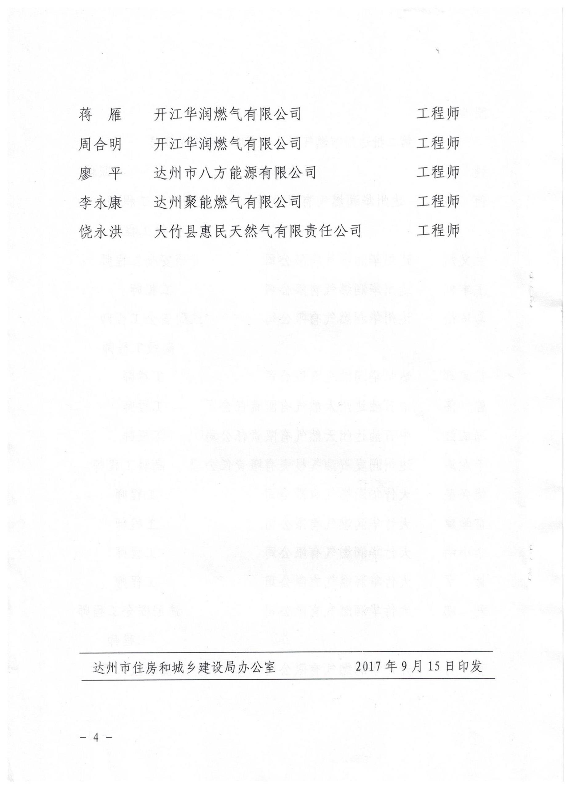 達(dá)州市住房和城鄉(xiāng)建設(shè)局第二批城鎮(zhèn)燃?xì)鈱<規(guī)烀麊?