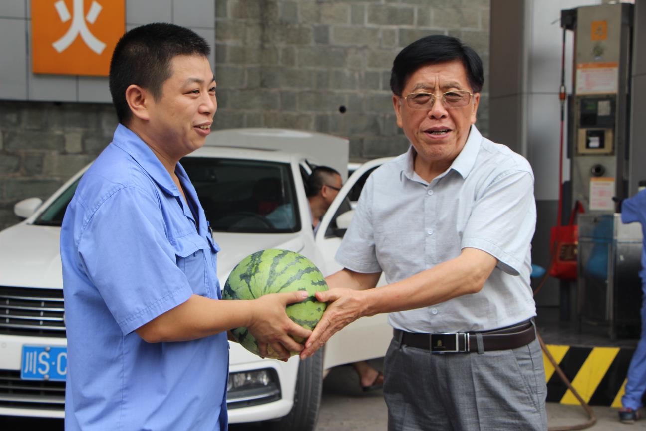 張會長一行先后驅(qū)車到肖公廟加氣站、文家梁搶險作業(yè)現(xiàn)場、海棠灣加氣站,為奮戰(zhàn)在高溫一線的員工們送去水果、防暑降溫藥品等,并叮囑員工在堅守崗位的同時要注意防暑,尤其是加氣站內(nèi)環(huán)境溫度高,更需落實防暑降溫工作。對他們堅守崗位促生產(chǎn)、奮戰(zhàn)高溫保安全、保障全市安全平穩(wěn)供氣表示感謝。領(lǐng)導(dǎo)們的一聲聲問候和贊譽,給一線員工們送去了炎炎夏日的的一份“清涼”,他們紛紛表示要加倍努力工作,保障安全穩(wěn)定生產(chǎn)。