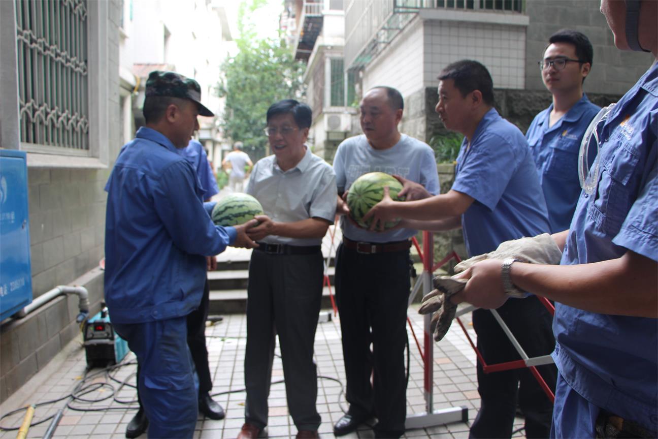 連日來氣溫節(jié)節(jié)攀升,驕陽似火,考驗著每一位堅守在一線崗位的員工。7月17日,達(dá)州市城鎮(zhèn)公用行業(yè)協(xié)會張會長、李秘書長一行頂著酷暑對我司基層一線員工進(jìn)行慰問,公司常務(wù)副總余志平、運行管理部、車燃部相關(guān)人員陪同。