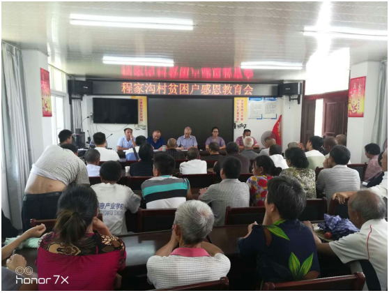 會上,村支部書記童德順介紹了村以前的艱苦條件逐步變?yōu)楝F(xiàn)在優(yōu)越的環(huán)境的變化過程,他說:“這是跟我們國家扶貧政策、幫扶單位、幫扶干部、工作隊是分不開的,沒有他們就沒有我們現(xiàn)在這幸福生活,程家溝村的村民一定要記住他們的好、一定要有一顆感恩的心”。