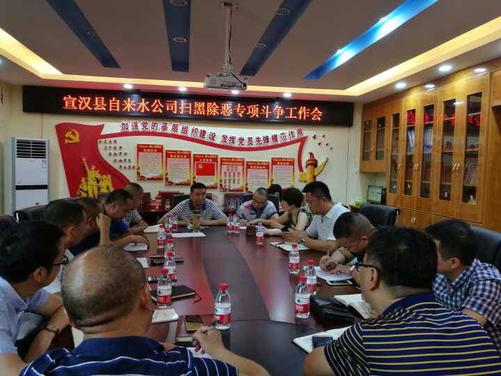 為貫徹落實省、市、縣掃黑除惡專項斗爭工作要求,維護企業(yè)正常的生產(chǎn)工作秩序,2018年9月3日上午,宣漢縣自來水公司召開了掃黑除惡專項斗爭工作會議。