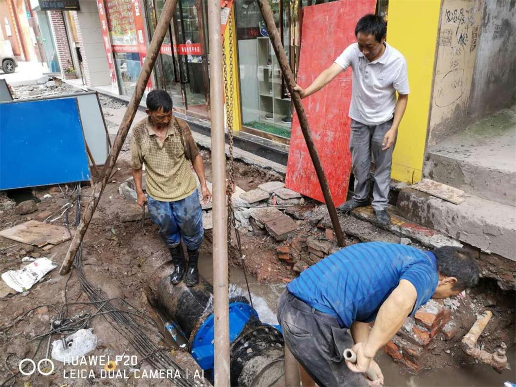 在城區(qū)人行道提檔升級建設(shè)過程中,因道路開挖不慎導(dǎo)致城區(qū)多處地下管網(wǎng)不時發(fā)生爆管。供水管網(wǎng)是連接公司與用水戶的“大動脈”,一旦出現(xiàn)破損,不僅會造成區(qū)域停水,而且特別難以維修。恰逢今年入夏以來我縣持續(xù)高溫,為幾十年之最,居民生產(chǎn)、生活用水需求節(jié)節(jié)攀高。為將供水影響降到最低,一旦發(fā)生爆管公司規(guī)劃安裝科維修人員總是第一時間趕到現(xiàn)場及時搶修。當全城進入“燒烤”模式,室外溫度高達40攝氏度,維修作業(yè)人員個個汗流浹背,和著泥水、汗水的衣服一遍遍濕透,他們頂著烈日的炙烤,爭分奪秒進行搶修,竭盡全力盡早恢復(fù)供水。截止9月17日,維修人員完成大小管道維修次數(shù)達120次(處)以上,維修、更換管道¢250mm鋼管18米;PE管:¢160mm10米、¢110mm20米;PPR管:¢63mm140米、¢50mm204米、¢、32mm280米、¢25mm514米。