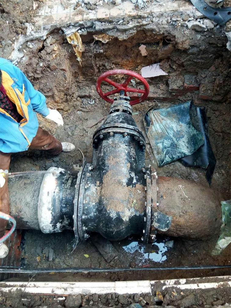 籍人行道鋪設(shè)開挖之機,公司規(guī)劃安裝科對城區(qū)需要更改的管道線路、更新維護的供水設(shè)施進行提前規(guī)劃,同時開展現(xiàn)場踏勘和材料籌備工作,找準時機作業(yè)。為不影響居民白天用水,常常安排在夜間進行,工作人員挑燈夜戰(zhàn),夜以繼日工作至凌晨兩三點才拖著疲憊的身軀稍事休息,第二天一大早又繼續(xù)投入緊張的搶修維護工作中。到目前為止,共更換DN400mm閘閥6個、DN300mm閘閥7個、DN250mm閘閥10個、DN200mm閘閥4個、DN150mm閘閥8個、DN100mm閘閥12個。