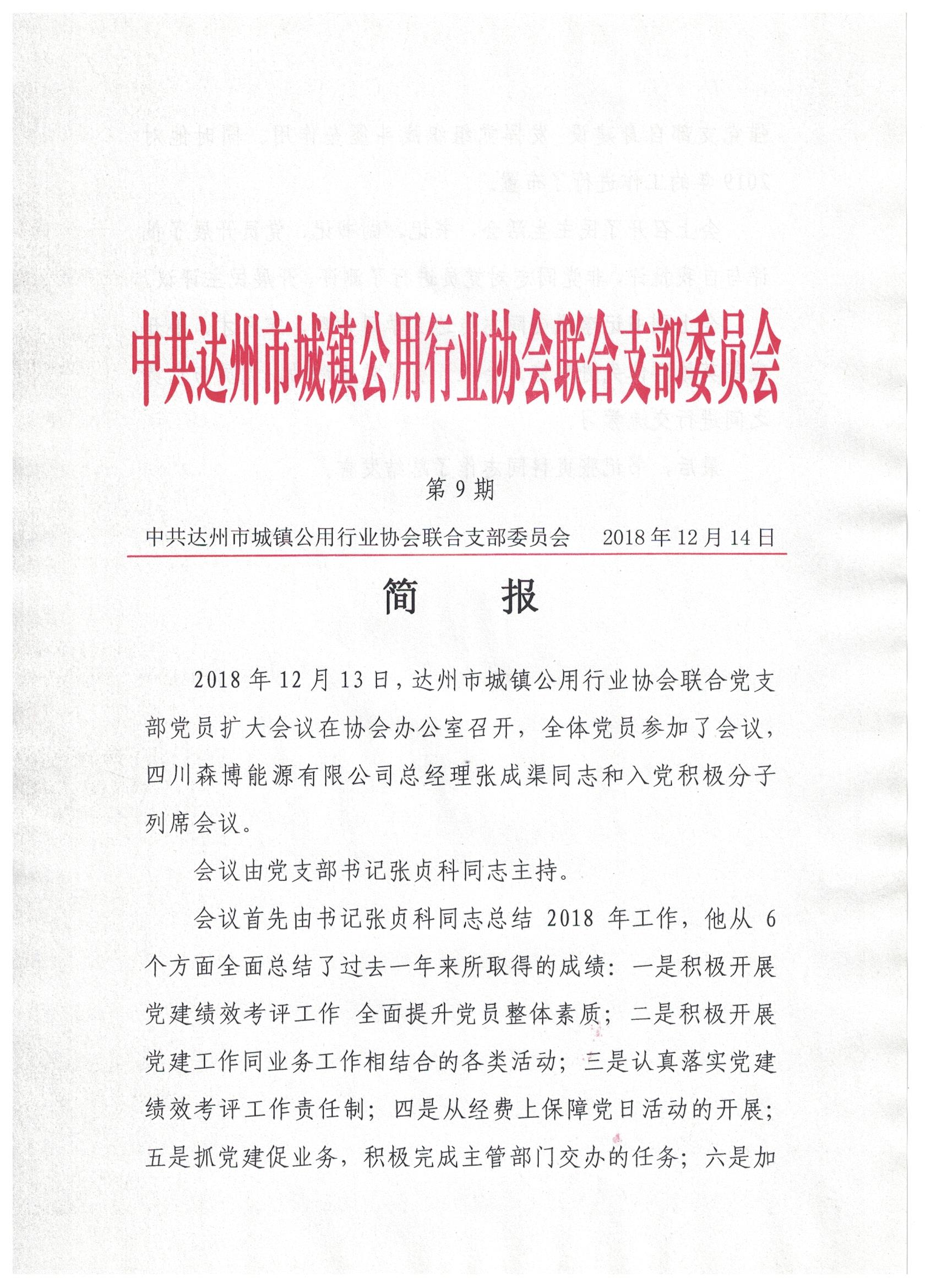 中共達州市城鎮(zhèn)公用行業(yè)協(xié)會聯(lián)合支部委員會2018年第九期簡報