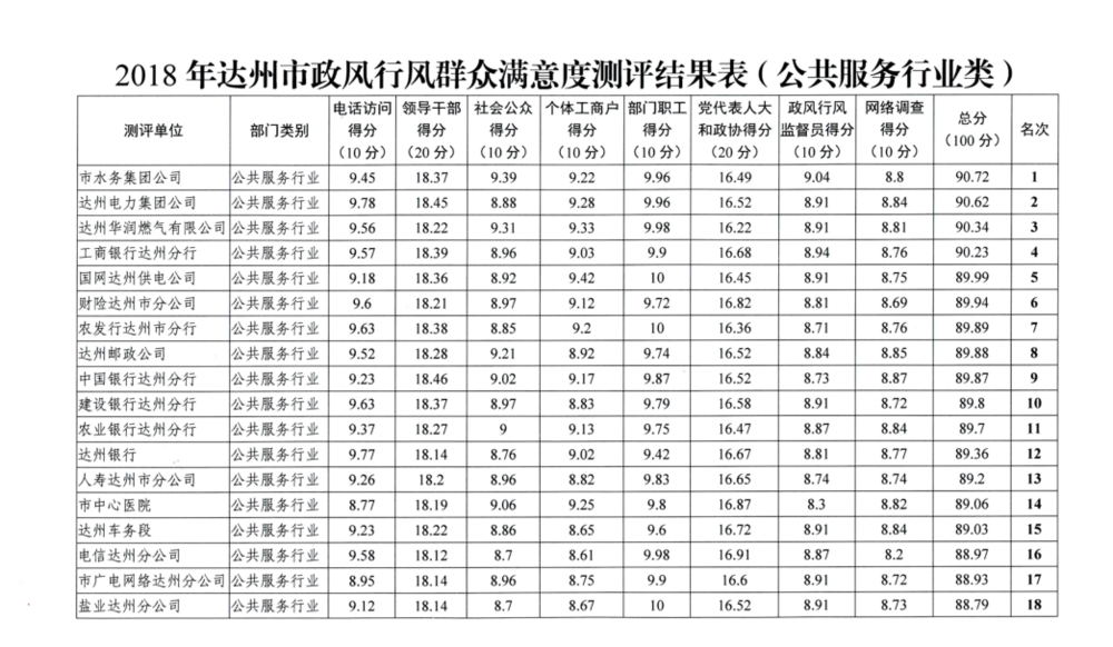 1月9日,達(dá)州市紀(jì)委監(jiān)委聯(lián)合發(fā)文,對2018年度市級部門和公共行業(yè)政風(fēng)行風(fēng)群眾滿意度測評結(jié)果作了通報(bào)。達(dá)州華潤燃?xì)庥邢薰驹谌泄卜⻊?wù)行業(yè)類28個(gè)單位中一舉奪得第三名,贏得政府相關(guān)部門和廣大市民群眾的一致好評。
