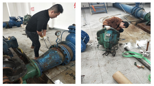 維修簡(jiǎn)訊:近日,公司運(yùn)行管理部接報(bào)龍?zhí)侗谜?/SPAN>132KW機(jī)組的水泵出現(xiàn)漏水情況,導(dǎo)致西城水廠進(jìn)水量出現(xiàn)異常。接報(bào)后運(yùn)管部立即安排機(jī)修人員對(duì)問題水泵進(jìn)行維修,斷電、拆卸、維修、復(fù)原,經(jīng)過機(jī)修人員一上午的不懈努力,最終排除了水泵故障,恢復(fù)正常運(yùn)行。